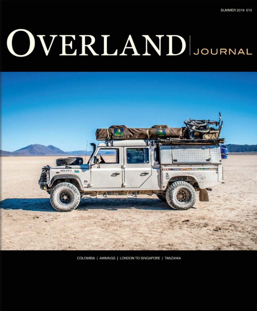 2019 SUMMER COLOMBIA · LONDON TO SINGAPORE · TANZANIA Feature Stories · Colombia: An Unplanned Adventure· Made in the Shade: Head-to-head Test of 270-degree Awnings· London to Singapore: nine Months in a 62-year-old Land Rover· The Migration: An Incredible Journey through Tanzania and Kenya· Portugal: It was the Dog that Barked