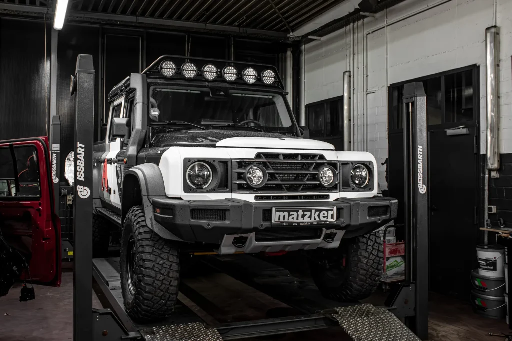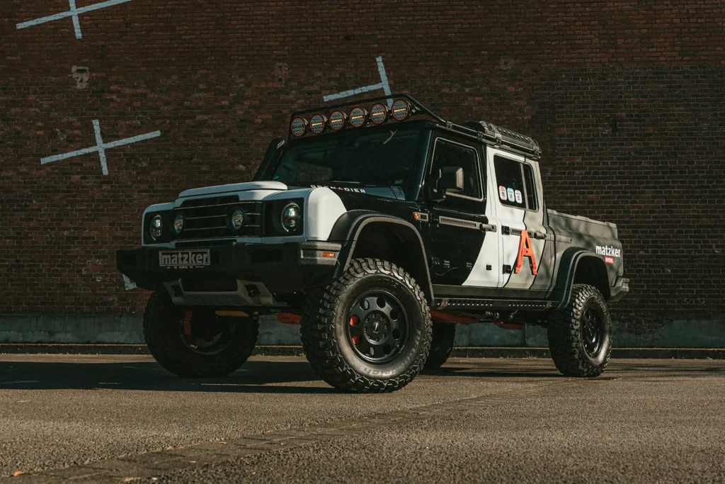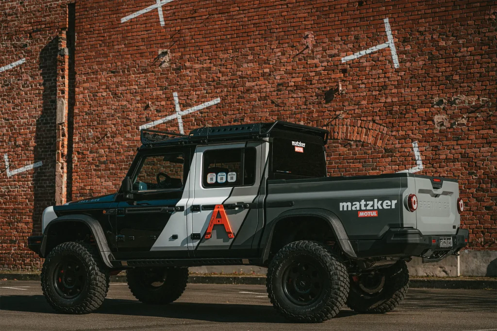 Die Basis ist ein INEOS Grenadier Quartermaster Trialmaster: der langradständige Lastenträger der Grenadier-Familie. In der Serie schon ein verdammt gutes Auto. Bequem, solide und absolut in der Lage, dich und deine Ausrüstung quer durch Kontinente zu bringen. Ich selbst bin über 20.000 km mit einem Quartermaster unterwegs gewesen—über Gebirgspässe, durch glühend heiße Wüsten und über polare Eisfelder. “Out of the box” ist er bemerkenswert gut. Aber “gut genug” gehört nicht zu Matzkers Vokabular. Nicht, wenn die Technik existiert, um aus Potenzial etwas Herausragendes zu machen.