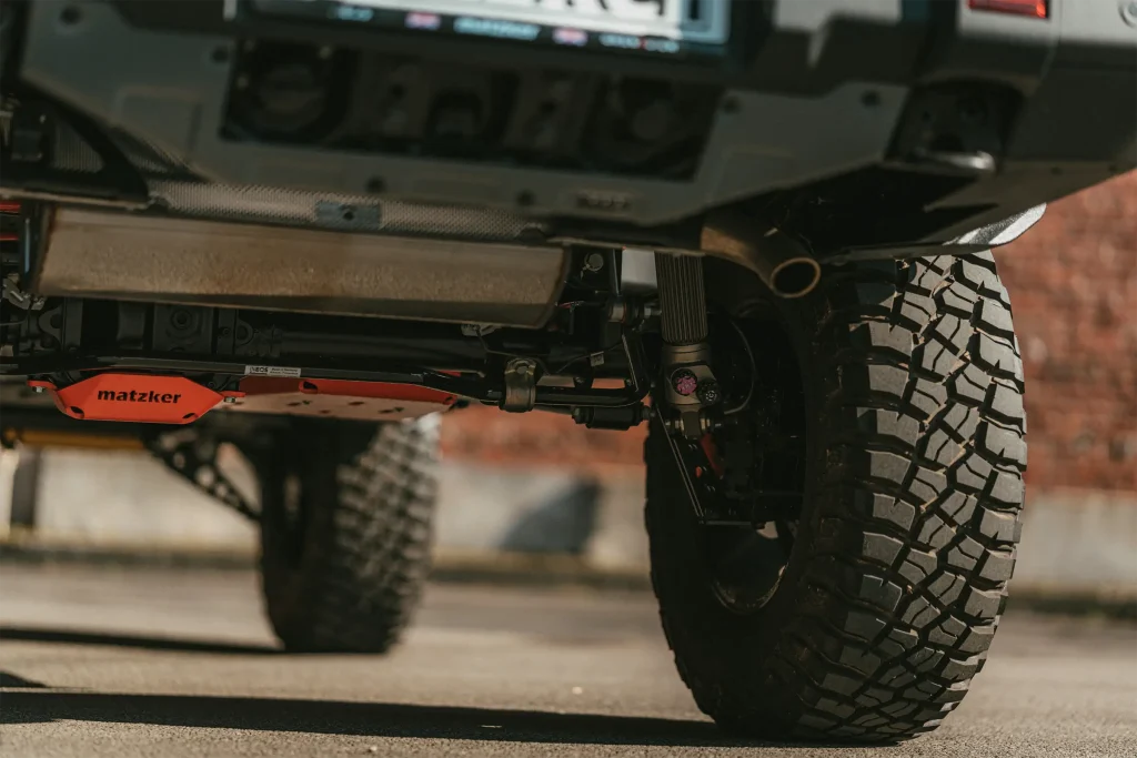 Der Quartermaster bekommt Matzkers kompletten Unterfahrschutz, der aus 8 mm starkem Aluminium in Luftfahrtqualität gefertigt ist—das stärkste auf dem Markt verfügbare Material.